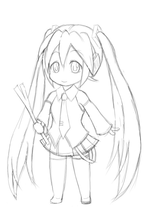 3頭身なミク描いてました・ω・