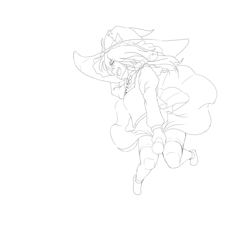 飛んでる感じを出すのも難しいし、あとドロワーも描かねば。